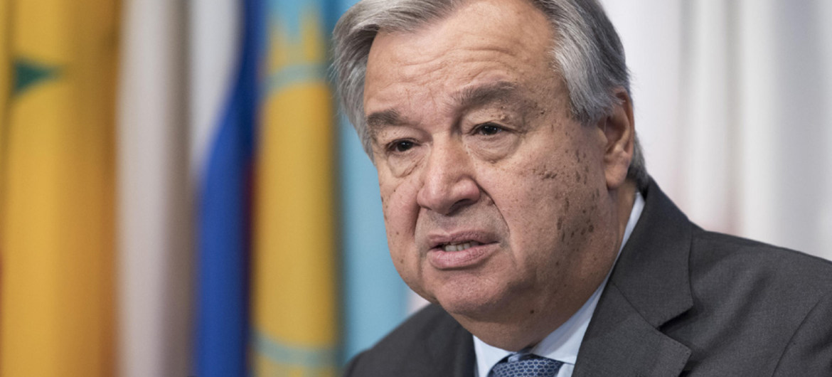 联合国秘书长古特雷斯向媒体发表讲话 联合国图片/Mark Garten