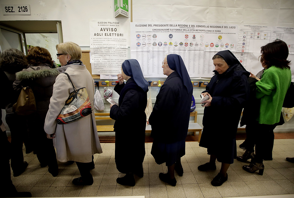 图:罗马选民4日排队投票/美联社