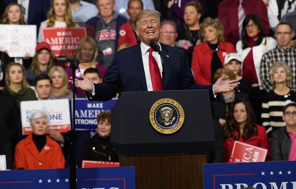 宾夕法尼亚州13日举行国会众议院议员补选,角逐在共和党人萨科尼和民主党人兰姆之间展开,民调显示两人支持率差距很小。特朗普10日在匹兹堡郊区出席造势活动,为萨科尼站台。演说中,特朗普谈到自己政治之路的下一步,“你相信吗,从现在算起两年后,我们的新口号将会是‘让美国保持伟大(Keep America Great),惊嘆号’。”俨然将议员补选造势当成了自己的表演舞台。