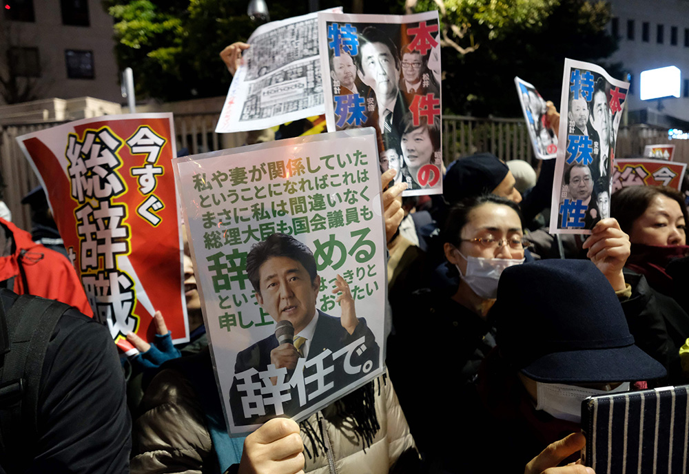 图:日本民众12日晚在首相官邸前示威,要求安倍下台 /法新社
