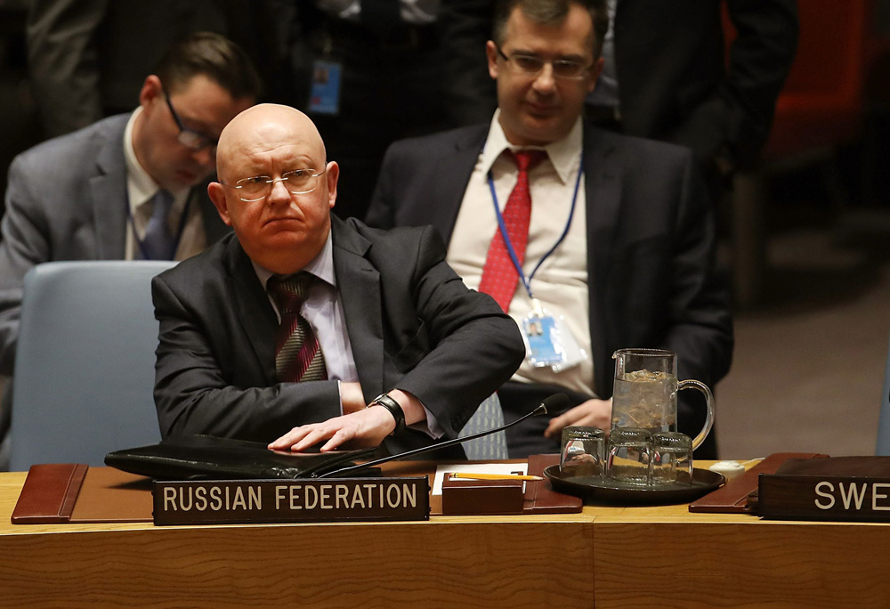 图:俄罗斯常驻联合国代表瓦西里.涅边贾 法新社