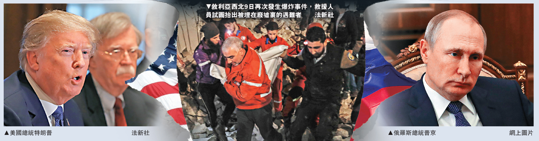【大公报讯】综合美联社、路透社、《德国之声》报道:叙利亚传出平民遭大马士革化武攻击的事件,美国为此在安理会上质问俄罗斯,而俄罗斯坚称没这回事。美国总统特朗普则警告,若叙利亚总统巴沙尔与其盟邦涉及化武攻击,将付出“重大代价”。除在联合国会议上针锋相对外,美国10日被爆正加强在地中海的军事力量,俄罗斯军方也正加紧应对。白宫10日宣布,特朗普取消13至14日访问拉美行程,只为能更好的监控叙利亚局势变化。