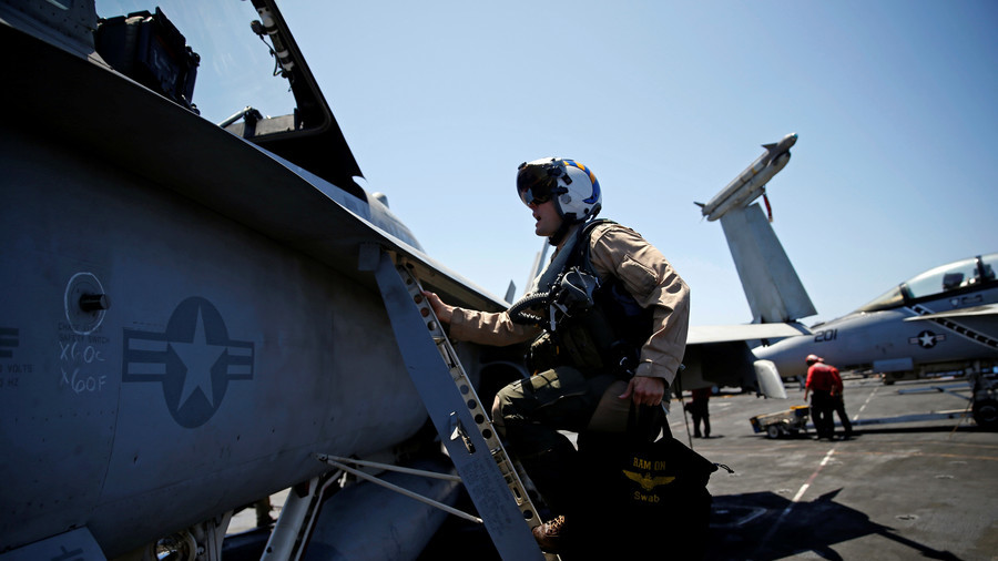 图为美军“杜鲁门号”航母上的飞行员。(路透社)