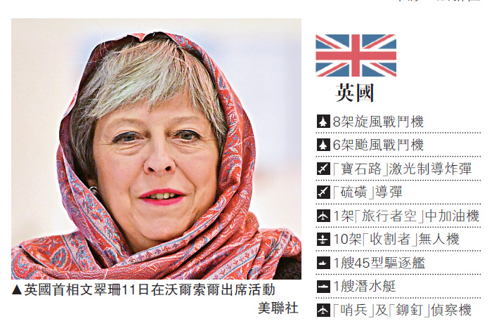 虽然声明没有透露採取军事行动的细节,但有消息人士指,英国将改变以往仅承担声援的角色,此次将真正参战,会和美联手展开军事行动。文翠珊也准备绕过国会,在没有徵得议会同意的情况下向叙利亚动武。