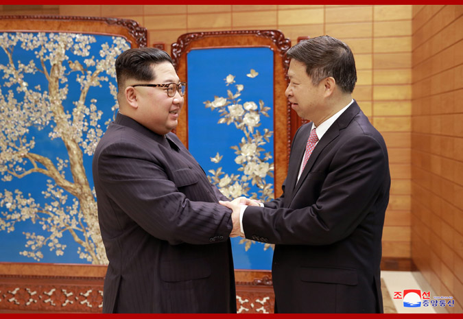 金正恩再次会见中共中央对外联络部部长宋涛。/朝中社