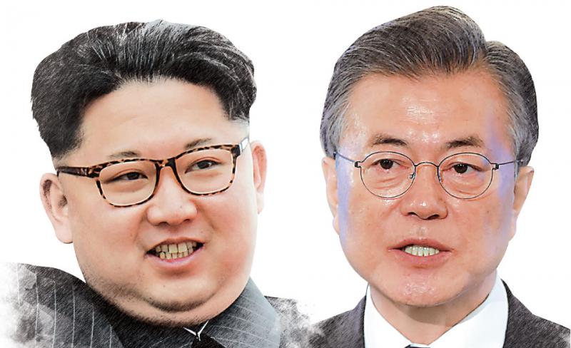 图:朝鲜领导人金正恩(左)27日将与韩国总统文在寅举行峰会 法新社
