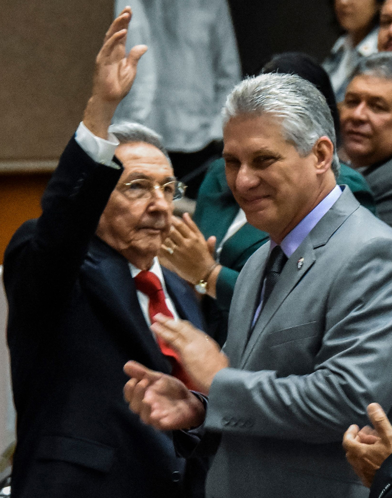 图:劳尔·卡斯特罗18日与卡内尔共同出席全国人民政权代表大会/法新社