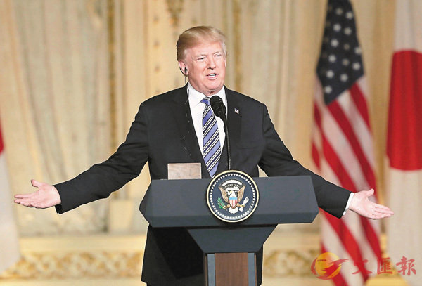 特朗普前日上午偕同安倍到名下高尔夫球场,打了约5小时高尔夫球,安倍其间以特朗普的名字“唐纳德”称呼对方,双方随后展开第二天会谈,会后会见传媒。