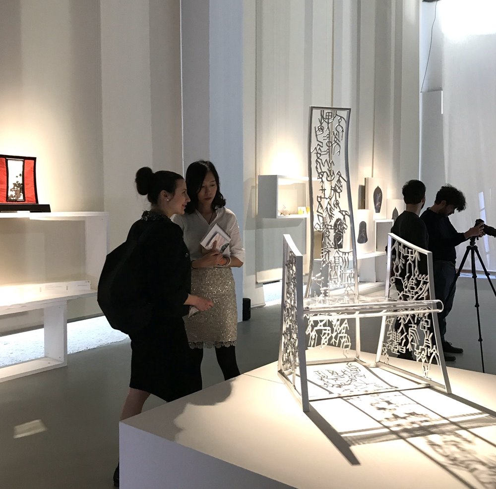 作为2018年米兰三年展中重头戏“米兰Triennale设计周”为中国设计师举办的唯一专题展览,同时也作为米兰国际家具展的官方平行展览,来自南京的设计师马聪的团队以“Floral Window”为主题,将《窗影流光》落地屏风组合、《朝锦》系列餐具、《玲珑望月》茶具、《青衣》茶具、《“漾”木纹金壶》、《仓颉椅》、《似水.流年》台屏、《拈花》屏风等10件与花窗相关的作品被别出心裁地嵌入米兰三年展博物馆专属马聪团队的322平米展陈空间内。