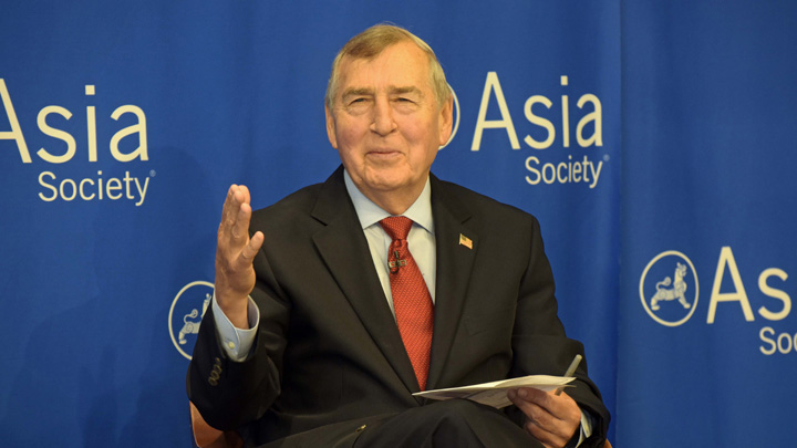 图:阿利森博士去年五月在纽约出席亚洲协会研讨会 资料图片