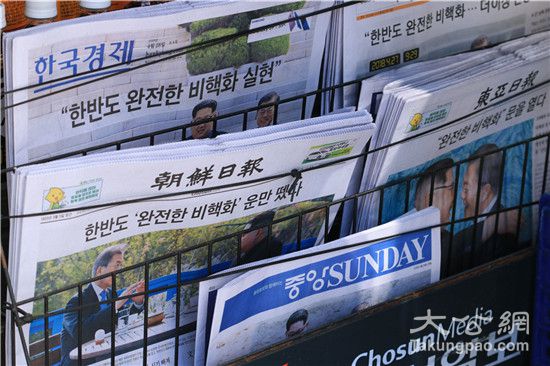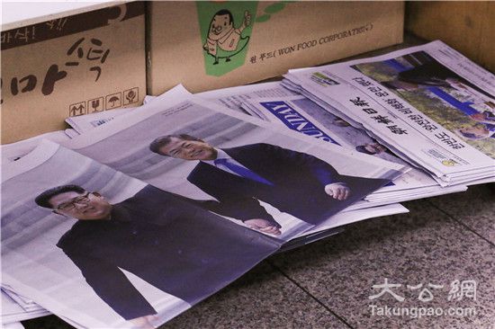 韩国路边报刊亭,各大报纸头版均为朝韩峰会内容