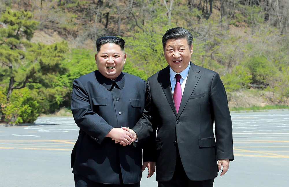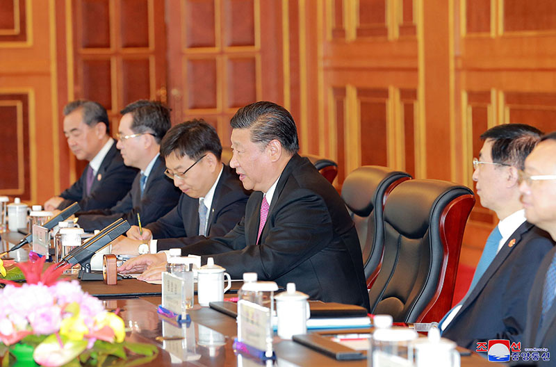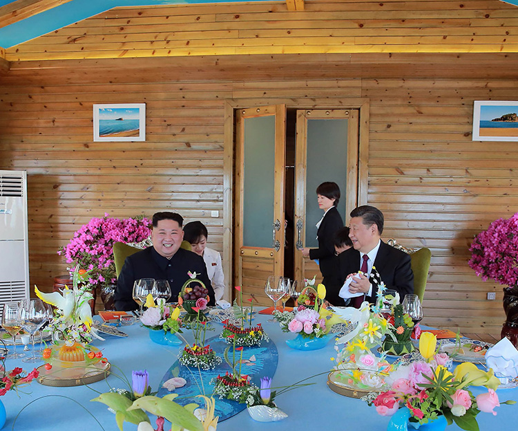 图:习近平与金正恩在大连棒棰岛国宾馆进行会谈\朝中社