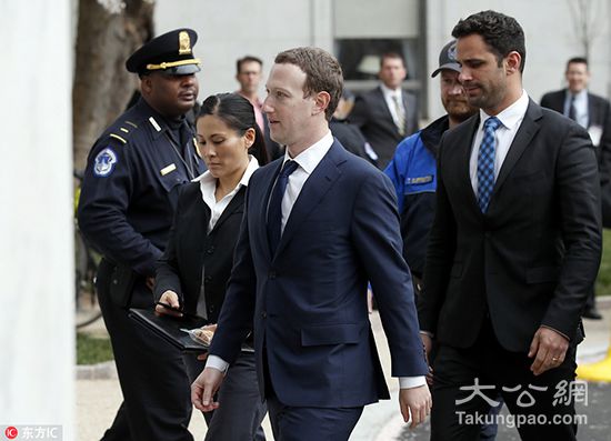 当地时间2018年4月11日,Facebook创始人扎克伯格出席听证会。/来源:东方ic