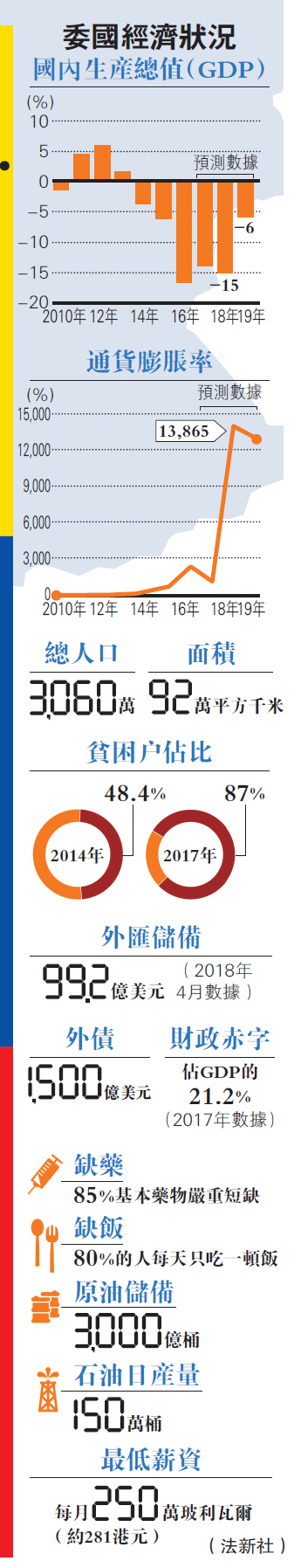 自二○一四年2月起,委国经济走势低迷。二○一五年12月,国际油价跌至7年来最低,委国陷入巨大危机,医药和食物面临严重短缺。