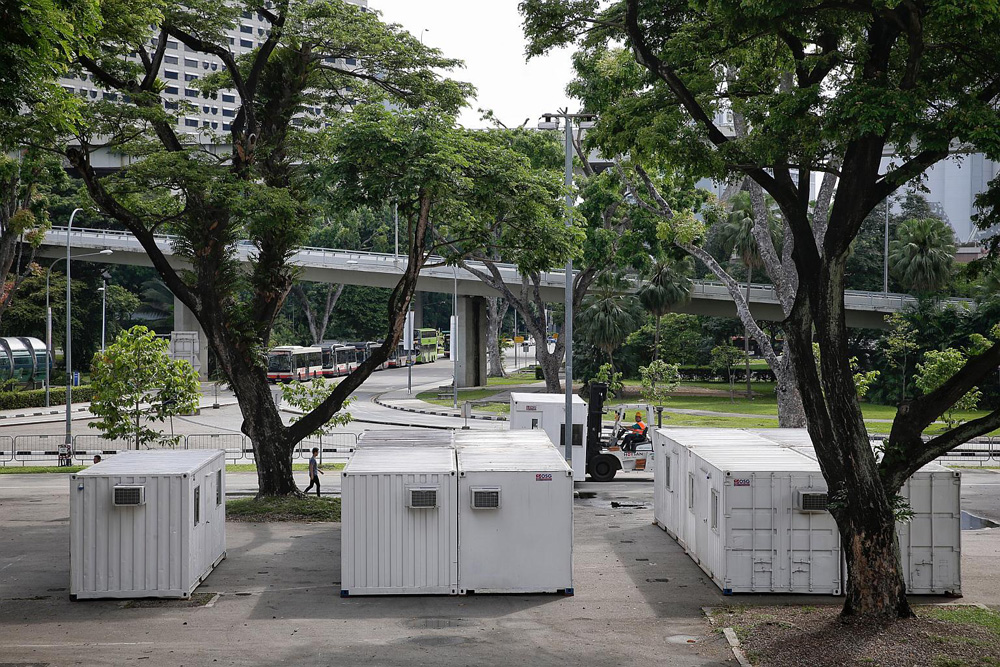 《海峡时报》记者稍早前获准进入大楼,该报称,三层楼高的媒体中心包括媒体简报室、用餐区及休息室等。大楼底层的车库中已堆放起路障、待装空调外机等设备;二楼房间里配有长桌,桌上铺着蓝白色桌布,每张桌子都设有数个电源插座,房外还放着一些蓝色座椅;不少工人正在三楼忙活。
