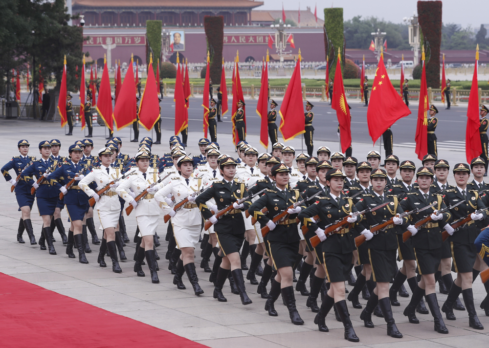 大公网6月8日讯 综合新华社、中新社报道:6日下午,中国国家主席习近平在人民大会堂东门外广场举行仪式,欢迎来华进行国事访问的吉尔吉斯斯坦总统热恩别科夫。与此前相比,欢迎仪式多项内容发生了新变化,包括三军仪仗队首次增加女兵方阵等,让人眼前一亮。这是经过改革后国事访问欢迎仪式的首次启用,充分展示了新时代大国外交新气象、新作为。