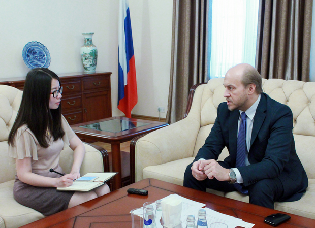 大公网记者严雪专访俄罗斯驻华大使馆公使叶甫根尼•陶米恒 张文杰摄