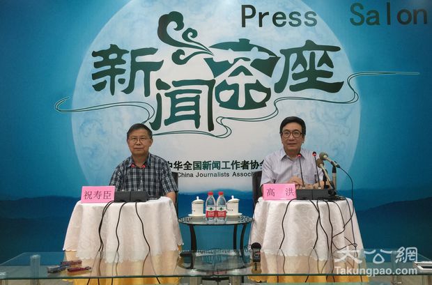 中国社会科学院日本研究所党委书记、副院长高洪(右)谈当前的中日关系。大公网记者常晓宇摄