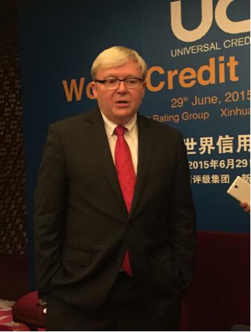 陆克文参加国际信用评级论坛间隙,接受大公网记者采访。