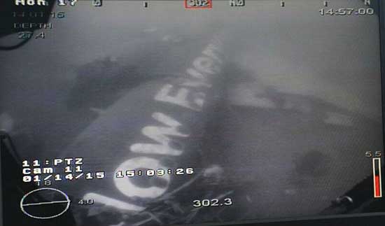 图:新加坡军方14日公布沉在海底的亚航客机机身 法新社