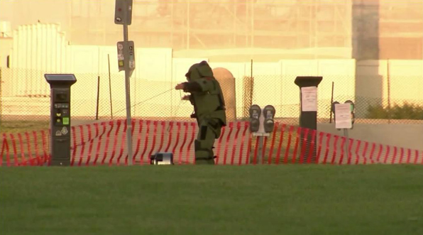 图:美国拆弹专家25日在国会山附近引爆一个可疑压力煲