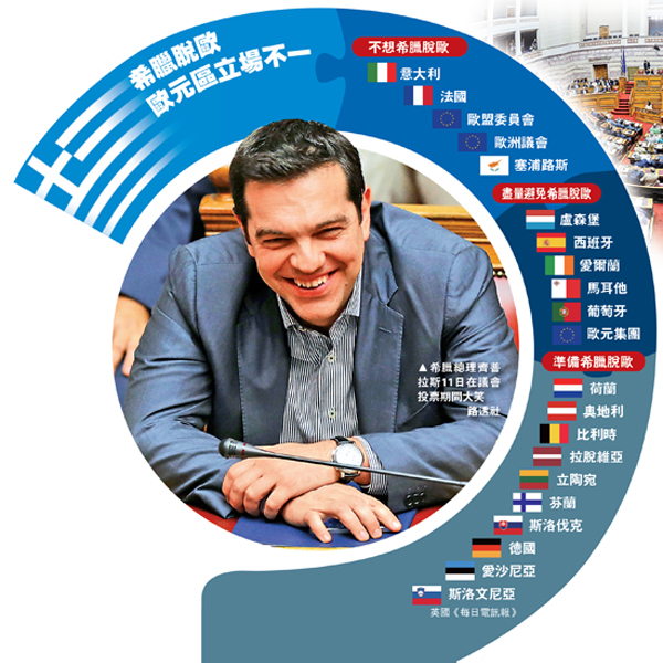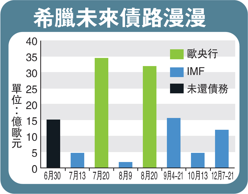 另外,就算欧盟领袖支持第三轮金援希腊,德国联邦议院仍须和另5个欧盟成员国针对此案进行表决,最有可能的时间是在下周初。惟有完成这道手续,并获得多数国会议员同意后,才能讨论纾困计划,估计整个程序走完还得好几个星期。