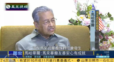 凤凰卫视7月16日消息( 记者蒋晓峰)马来西亚前总理马哈蒂尔日前接受凤凰卫视独家专访,就现任总理纳吉布疑似涉贪风波、华裔在马来西亚的处境,及中国与东南亚国家的关系发表他自己的看法。马哈蒂尔曾经担任马来西亚总理22年,年届90,虽然已经退休,仍然在国家政坛发挥重要影响力。