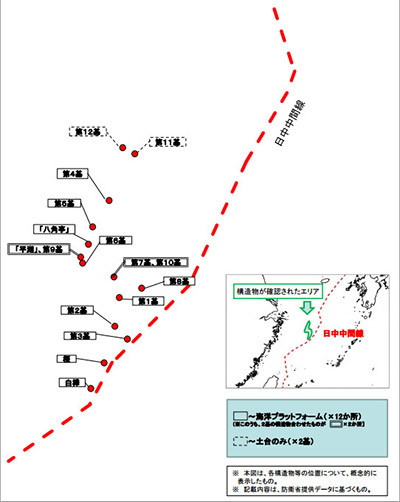 日本共同社22日报道,日本政府当天在外务省网站公开了中国在东海开发天然气田的相关航拍照片和地图。官房长官菅义伟在记者会称,已确认2013年6月以后,在所谓“日中中间线”的中国一侧有12处建筑物,批评称“对单方面的资源开发极为遗憾”。