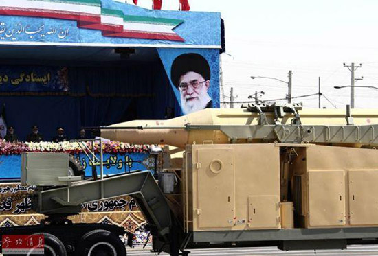 资料图:伊朗阅兵式上展示的导弹