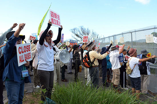 图:日本冲绳居民12日集会反对美军基地搬迁/法新社