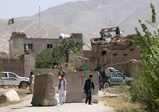 图:阿富汗警察在加兹尼省被袭击的监狱外路透社