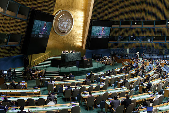 这是9月14日在纽约联合国总部拍摄的第69届联合国大会最后一次全会及闭幕式。(新华社记者李木子摄)