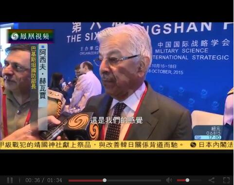 出席香山论坛的巴基斯坦国防部长赫瓦贾在接受凤凰卫视采访时表示,在打击恐怖主义方面,巴基斯坦和中国有共同的敌人。打击东伊运恐怖组织已取得重大进展,相信东伊运恐怖组织已经完被清除。