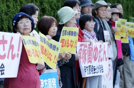 据报道,集会者拉起“知事不得批准重启”的横幅,手持话筒高呼诉求,呼喊“请重新考虑批准重启的决定”等口号。