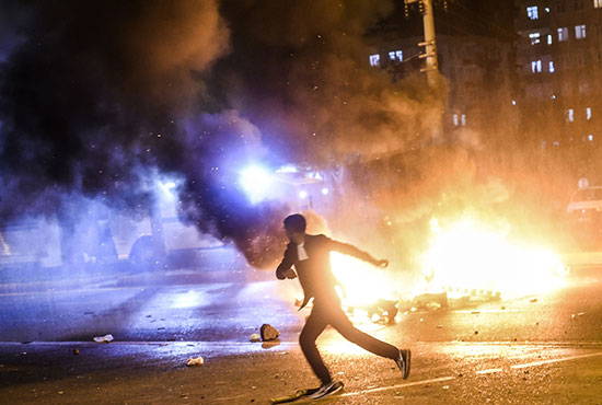 数十名示威者上街抗议,部分人投掷石块,在市中心附近焚烧车胎,堵塞道路,警察发射催泪弹驱散人群。
