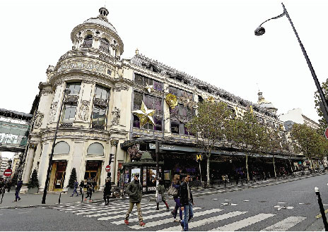 图:11月14日,受恐袭影响,巴黎著名购物区门前冷清/法新社