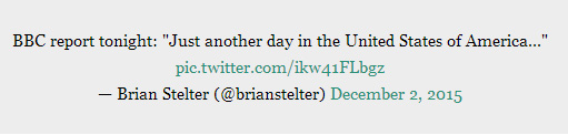 BBC评论员称,“又是充满枪声、惊慌及恐惧的一天,这次是加州圣贝纳迪诺市的一个社区中心遭到袭击。”目前,该评论员的身份尚不明确。