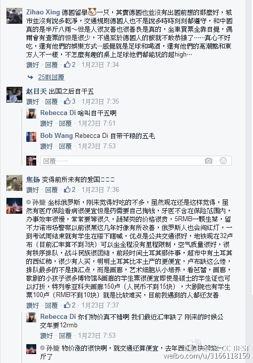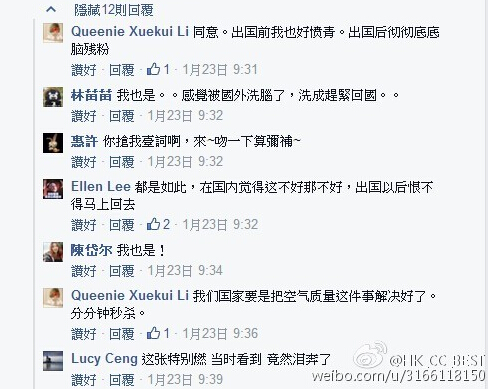 这个感叹或许你早听说过,“越出国越爱国?”这些年,随着“走出去”的国人日益增多,来自不同领域的答案也让它慢慢从疑问句变成了肯定句。上月李冰冰的点赞还言犹在耳,26日,网友@HK_CC_BEST 发布了一条微博,“为什么说越出国越爱国?这些来自世界各地的中国人讲述他们在国外的故事。”在随文附上的9张截图中,留学党们的回答五花八门。