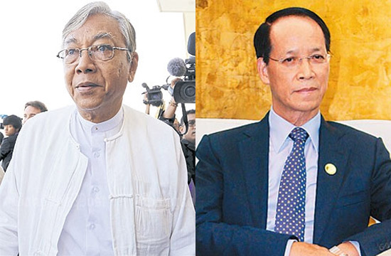 民盟资深成员吴廷觉(左)、缅甸现任副总统赛貌康 资料图