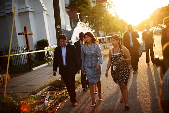 图:去年6月,黑莉(左二)到访发生枪击案的查尔斯顿教堂/资料图片