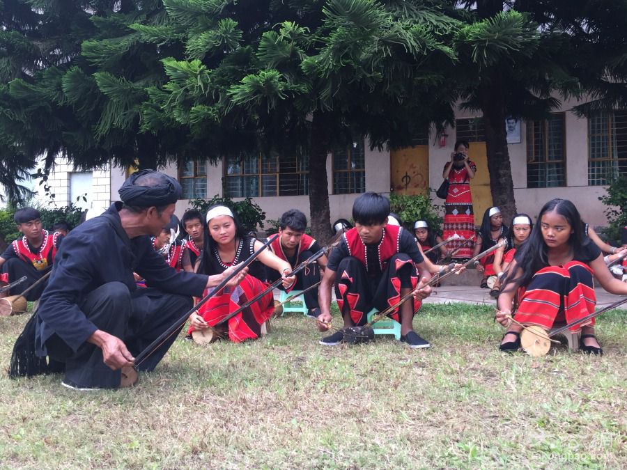 魏尼军和同学们一起学习佤族传统文化 谭旻煦 摄