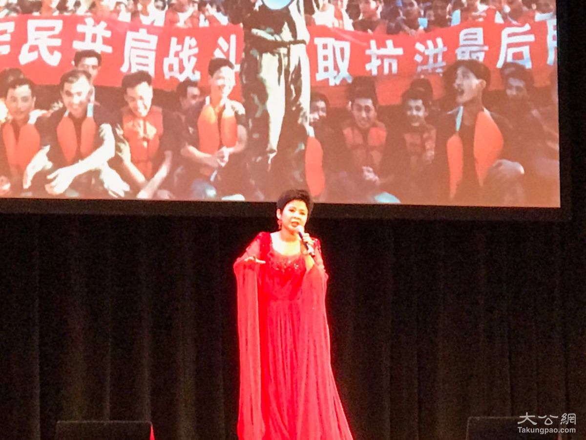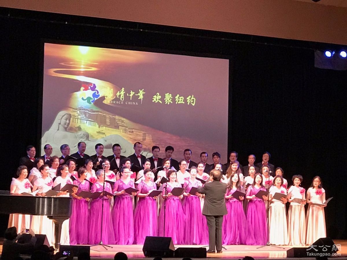 中国驻纽约总领事章启月亲自率领纽约总领馆合唱团,与纽约本地的姚大叔合唱团合作,演唱了《半个月亮爬上来》和《我和我的祖国》两首歌,引起了全场观众热烈的掌声和欢呼 黄晓敏 摄