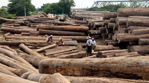 几名工人在伊洛瓦底江边的木材堆料场工作。图:参考消息网